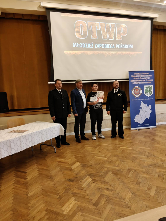 Krystian Grzywacz – uczeń kl. 6 wykazał się znakomitą wiedzą w zakresie pożarnictwa zdobywając I miejsce, a tym samym zakwalifikował się do dalszego etapu konkursu powiatowego.
