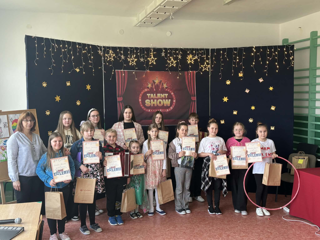 Z okazji obchodów pierwszego dnia wiosny w naszej szkole zorganizowany został konkurs „Mam Talent”, który dał uczniom możliwość zaprezentowania swoich pasji, umiejętności i kreatywności przed szkolną społecznością. Uczestnicy zaprezentowali różnorodne talenty – od śpiewu, tańca, gry na instrumentach, przez występy teatralne, pokazy na rolkach, aż po sztuczki magiczne, czy nietypowe umiejętności. Każdy występ był okazją do wyrażenia siebie i rozwijania pewności siebie. Występy oceniało jury, które brało pod uwagę takie elementy jak oryginalność, zaangażowanie, poziom przygotowania oraz kontakt z publicznością. Nie obyło się bez nagród, wyróżnień i dyplomów. Wydarzenie odbywa się w przyjaznej i pełnej entuzjazmu atmosferze. Konkurs "Mam Talent" okazał się doskonałym sposobem na wspólne świętowanie nadejścia wiosny i budowanie pozytywnych relacji w szkole. Na zakończenie świętowania uczniowie udali się na Słodki Poczęstunek, który przygotowali wspaniali rodzice. Serdecznie dziękujemy za słodkie pyszności. Wszystkim uczestnikom gratulujemy i życzymy wytrwałości w rozwijaniu swoich talentów i pasji!!!