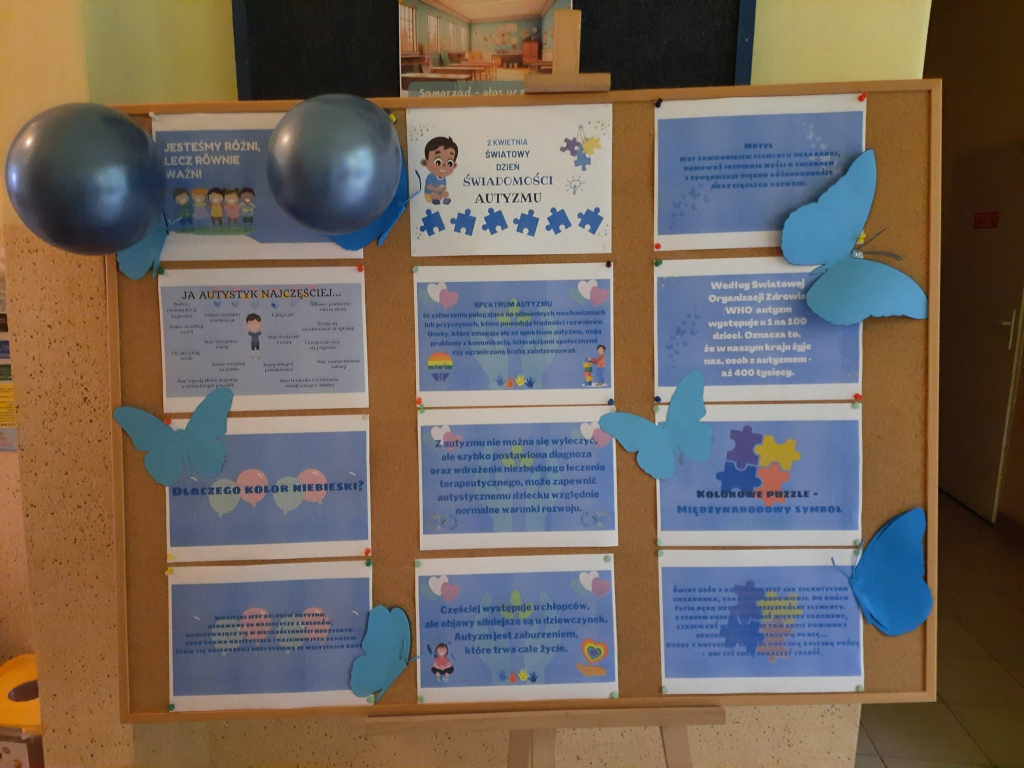 Tego dnia zarówno uczniowie jak i nauczyciele ubrali się na niebiesko - kolor symbolizujący solidarność z osobami w spektrum autyzmu.