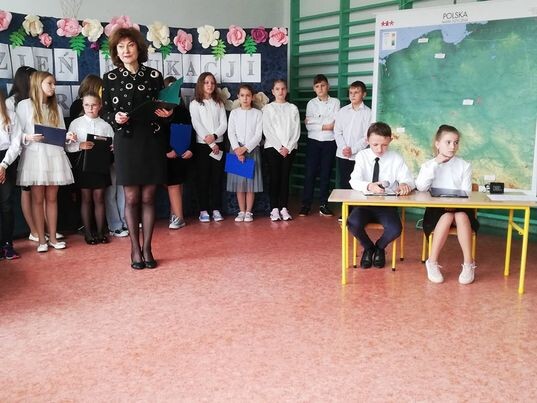 Po części oficjalnej nauczyciele, rodzice i uczniowie obejrzeli satyryczny program „Teleekspres” w wykonaniu uczniów klasy IV, V i VI. Uczniowie przedstawili zabawne scenki z życia szkoły, ale nie zabrakło również refleksji nad wyjątkową pracą nauczyciela.