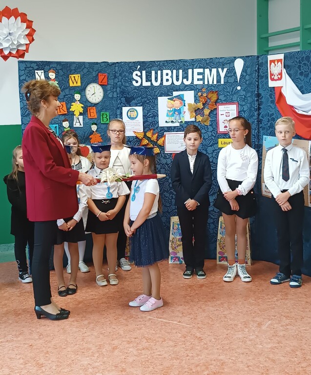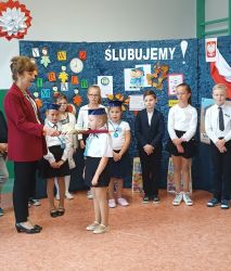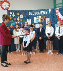 Wszystkim pierwszoklasistom życzymy, aby ten dzień pozostał w ich pamięci jako wielkie przeżycie i niezapomniana, radosna chwila. A rodzicom gratulujemy tak zdolnych pociech.