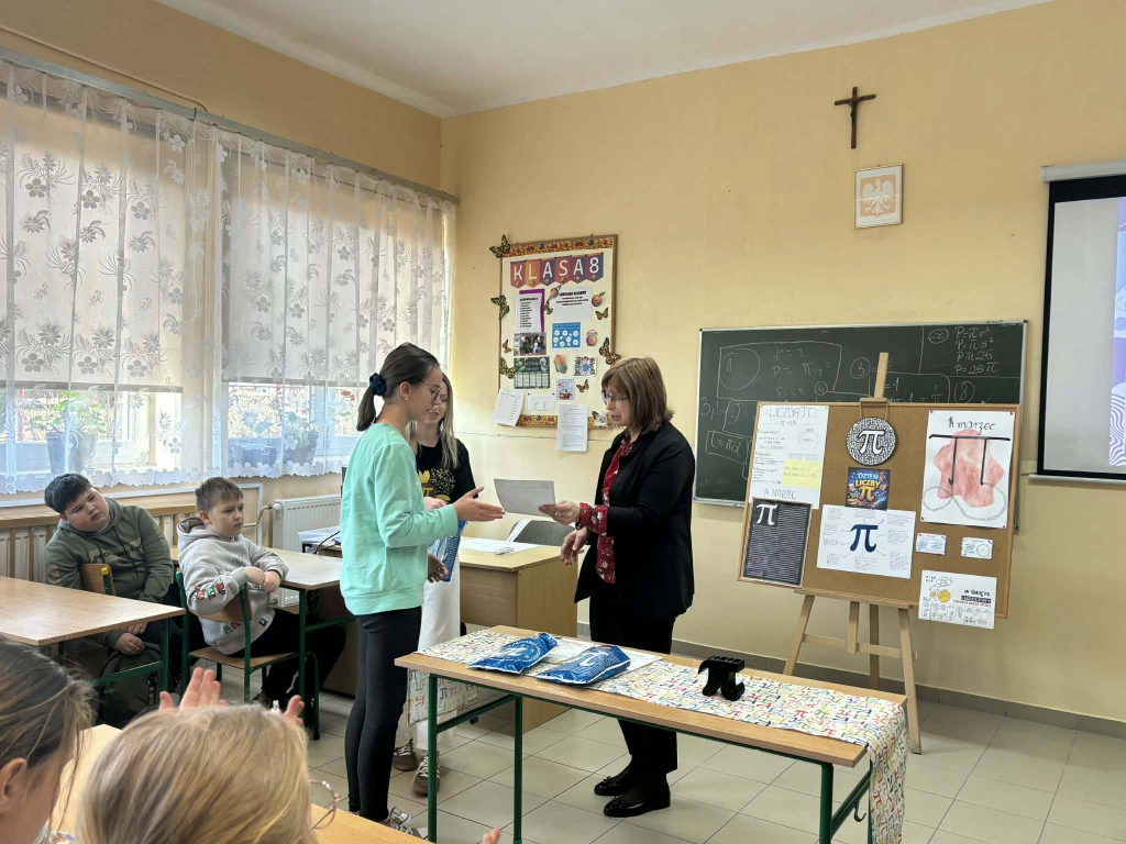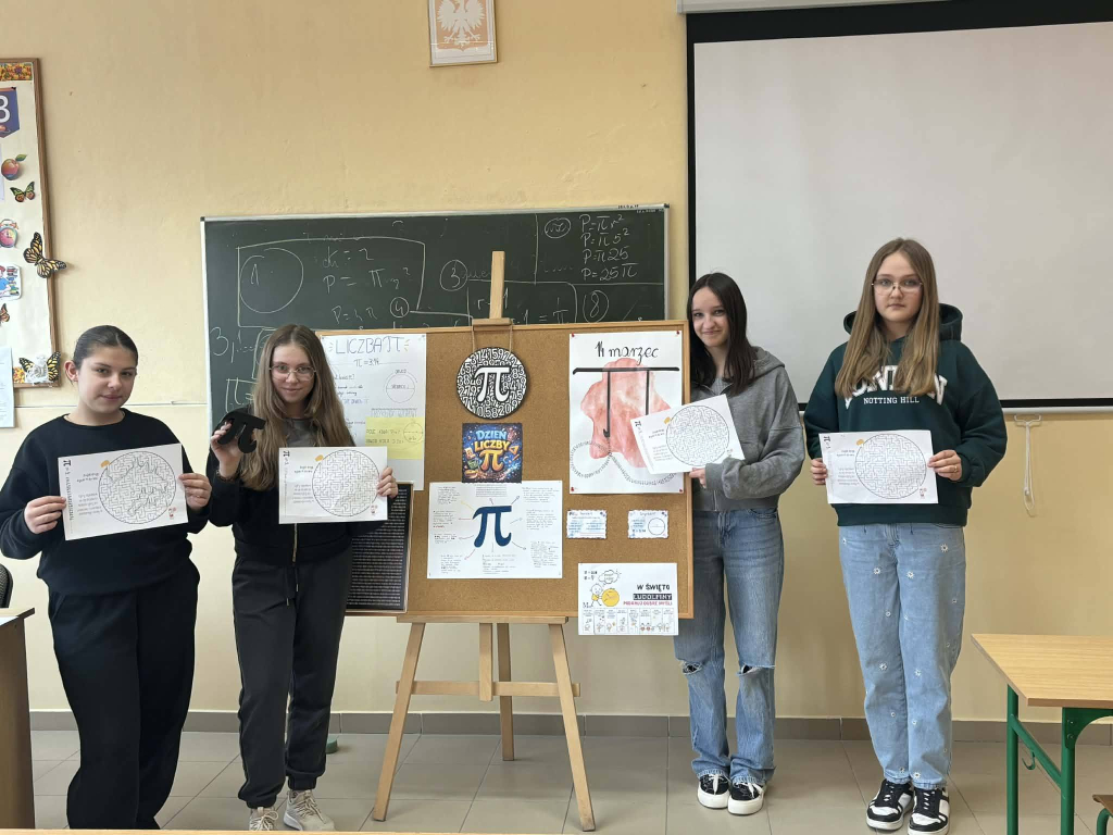 Uczniowie klas ósmych przygotowali ciekawe projekty dotyczące liczby π, prezentujące jej historię, zastosowanie oraz różne ciekawostki z nią związane. Natomiast pozostali uczniowie – w tym również klasy ósme rozwiązywali karty pracy poświęcone liczbie π, sprawdzając swoją wiedzę i umiejętności matematyczne.