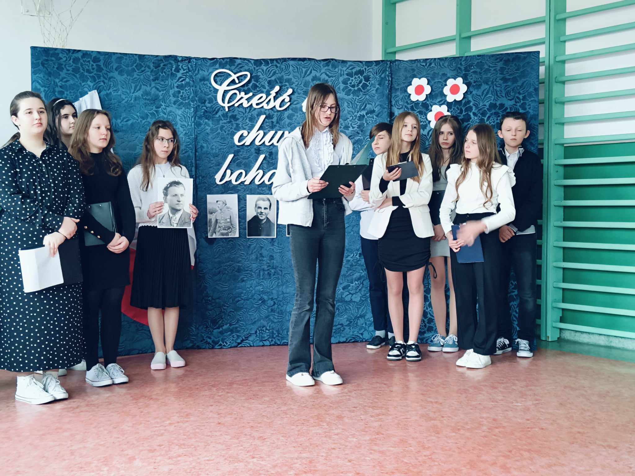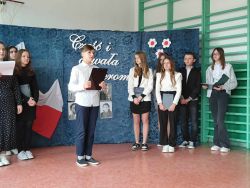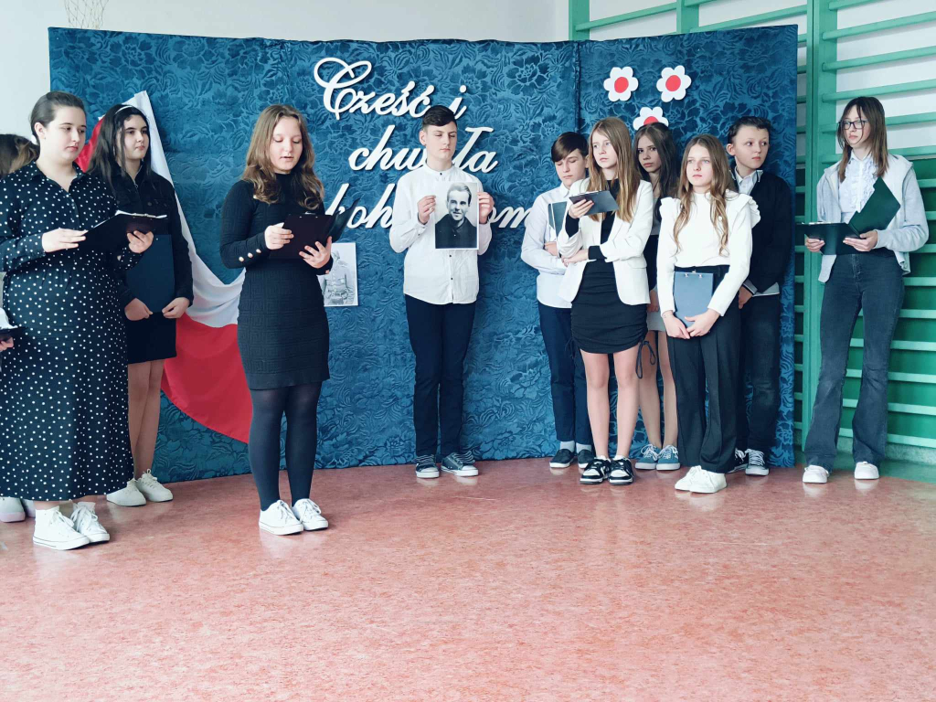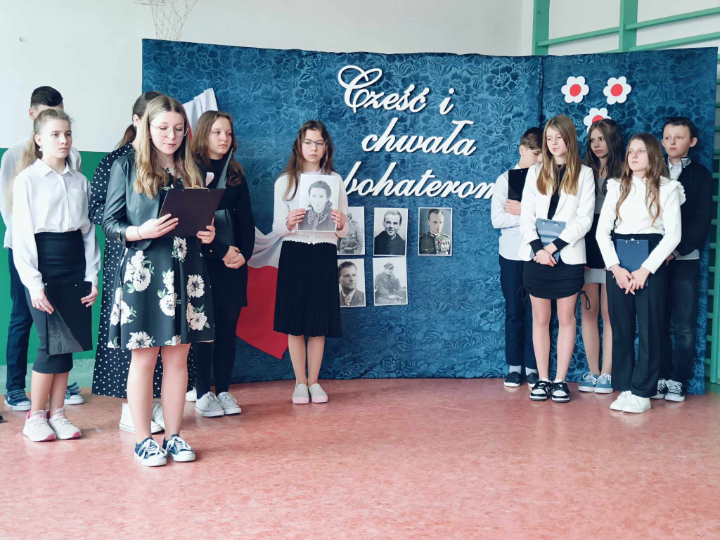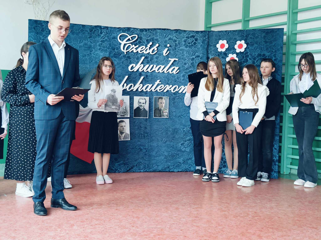 Uczniowie naszej szkoły, pod opieką nauczyciela historii pana Ryszada Turka przedstawili dziś wzruszającą akademię słowno - muzyczną upamiętniającą bohaterów antykomunistycznego podziemia - „Żołnierzy Wyklętych”. Żołnierzy, którzy w obronie niepodległego bytu Państwa Polskiego, walcząc o prawo do samostanowienia i urzeczywistnienie dążeń demokratycznych społeczeństwa polskiego, z bronią w ręku, jak i w inny sposób, przeciwstawili się sowieckiej agresji i narzuconemu siłą reżimowi komunistycznemu.